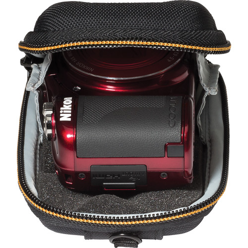 There are a few cases out there, and we weren't happy with the one listed first on the B&H site. After looking at a few we chose the Lowepro Santiago 20 II. It has semi-rigid outside and a big piece of foam on the inside. It fits the camera snugly and seems to over good production. The two zipper pulls open it to either side and it clamshell opens with a little folding fabric holding the camera. The neck strap is centered on the case and holds it straight.